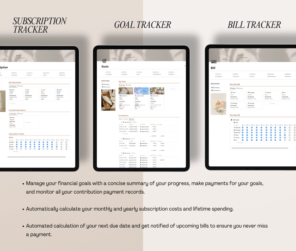 - Set financial goals, create payment plans, and monitor progress.