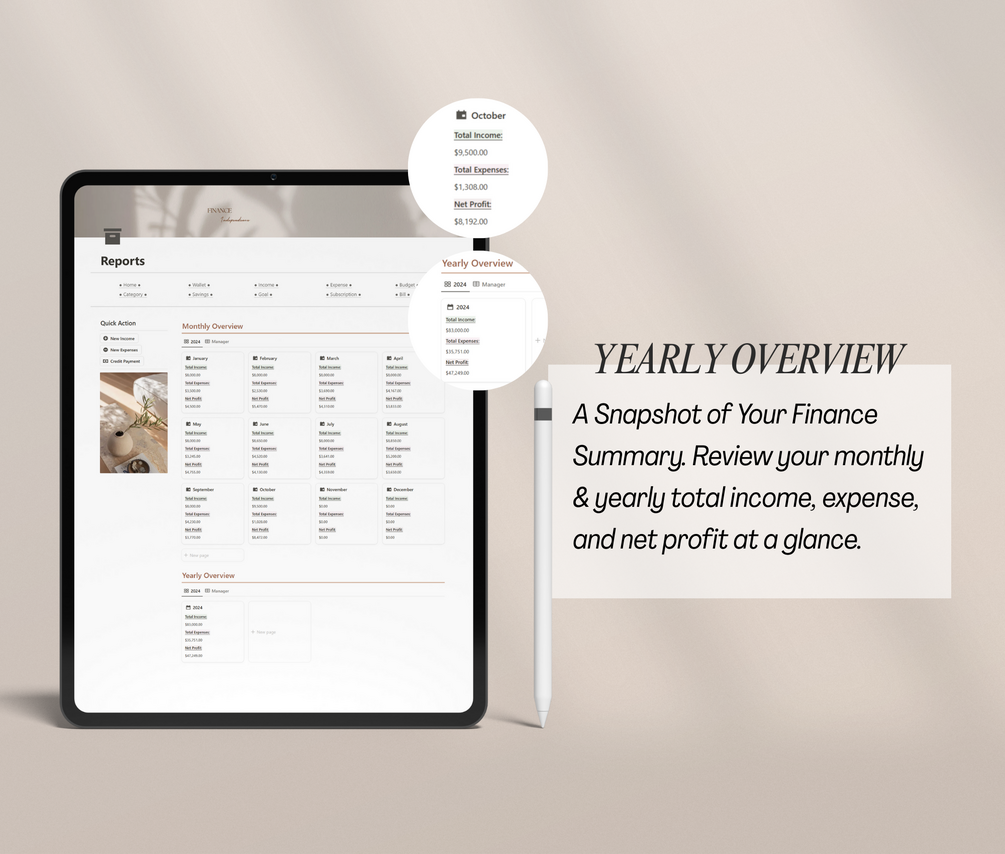 - View Monthly and Yearly reports to understand your finances better.