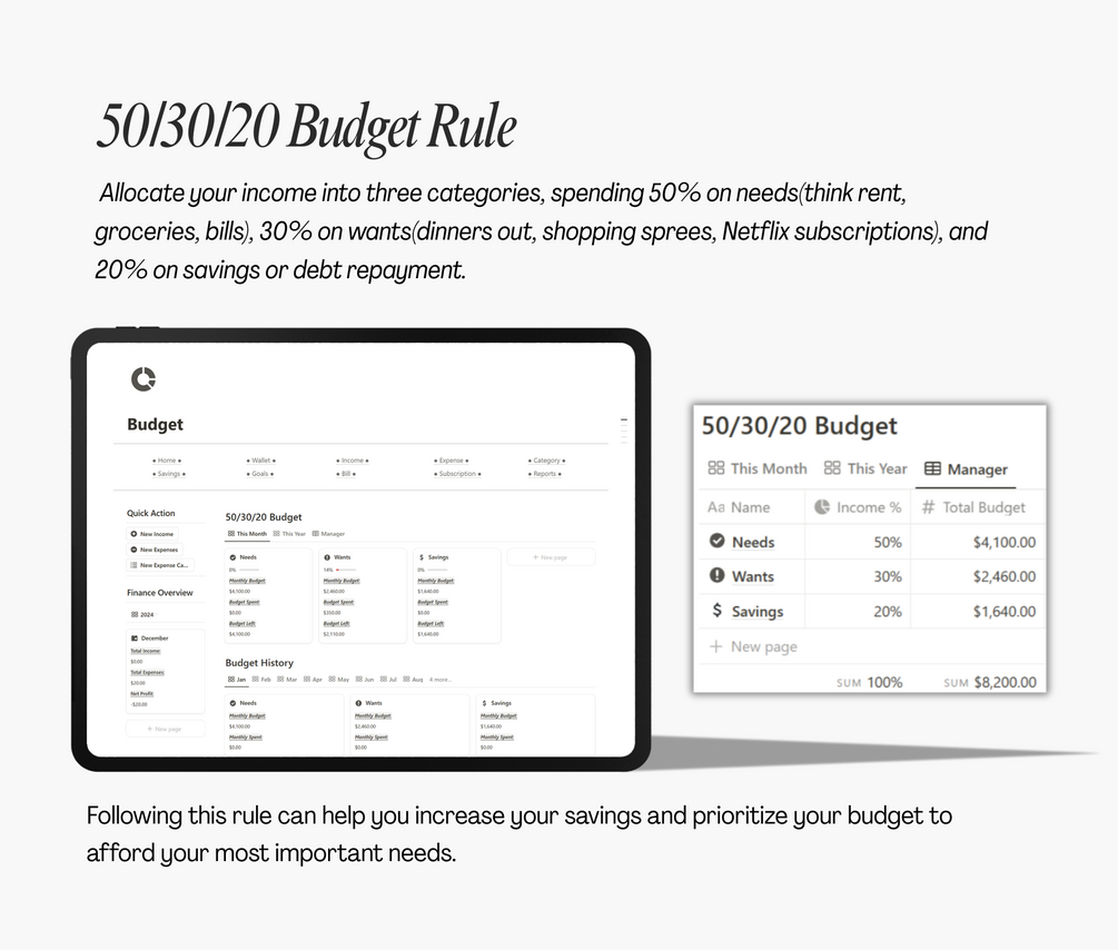 Minimalist Notion 50/30/20 Personal Finance Tracker | Notion Template