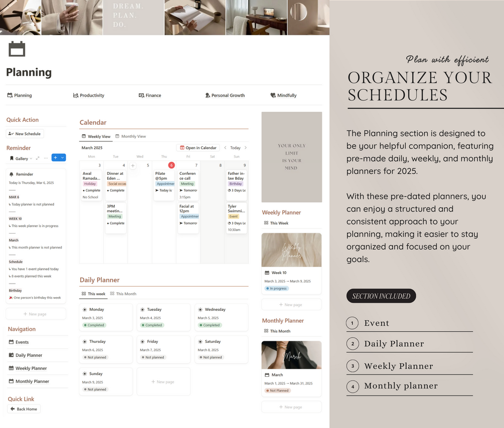 ❤ PLANNING - Event Calendar, Daily, Weekly, Monthly Planners(All Dated 2025).