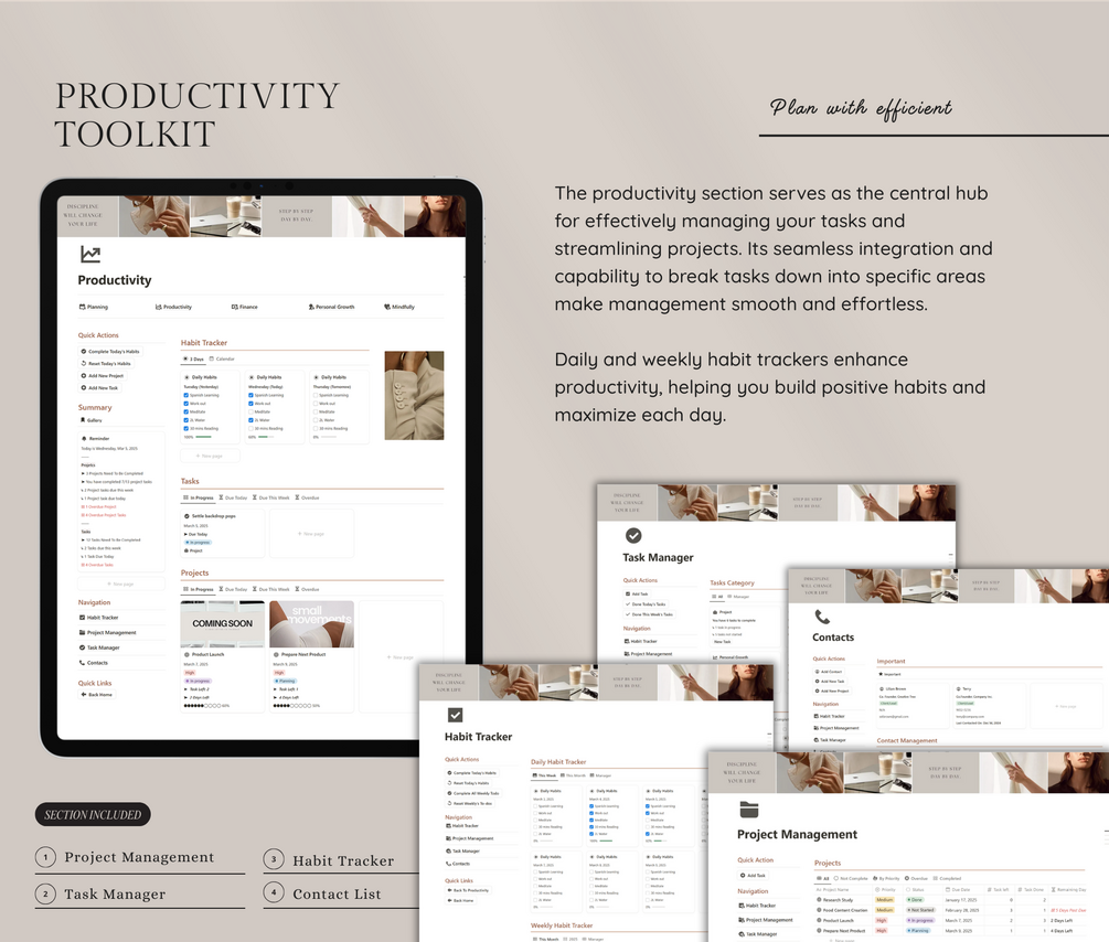 ❤ 5 Sections to help you stay organized and boost your productivity.