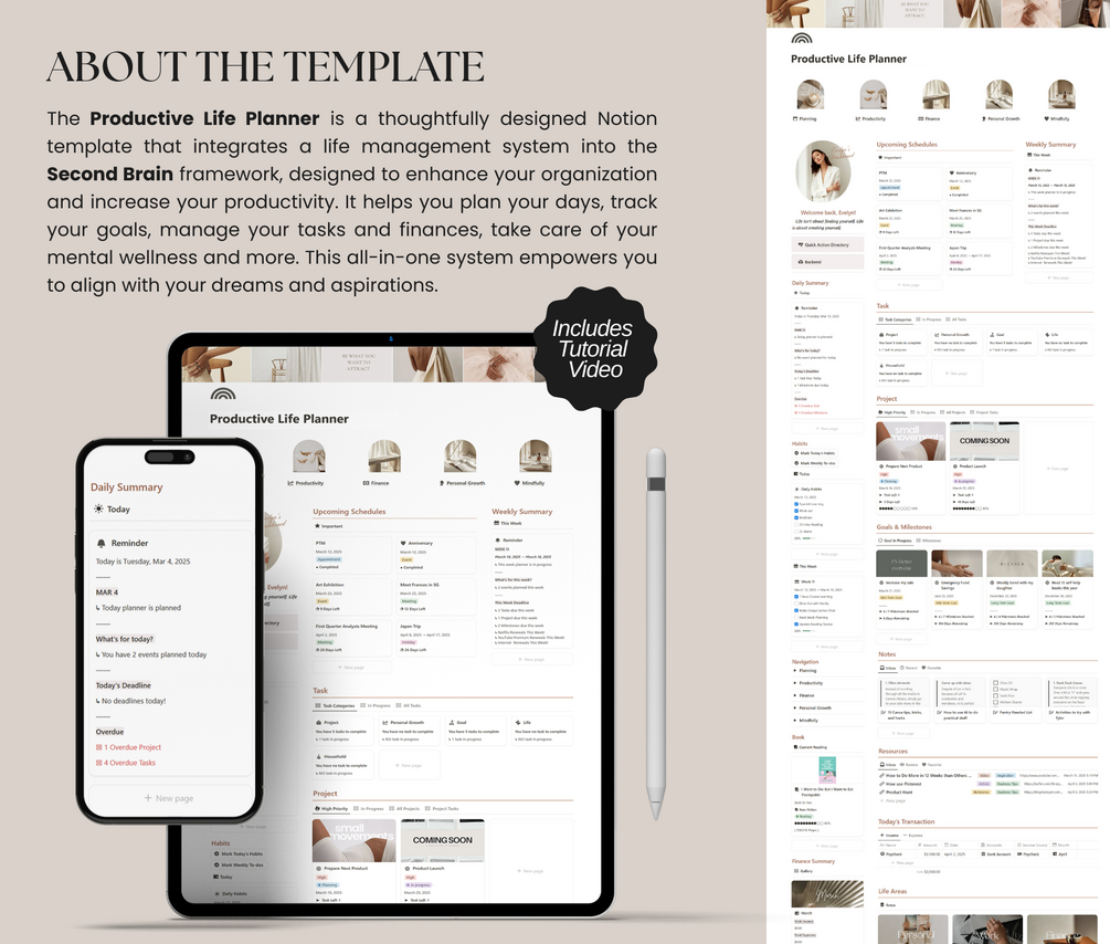 Instead of juggling multiple apps across different platforms to manage your life and work, this planner keeps everything organized in one central location, allowing you to maintain focus and clarity.