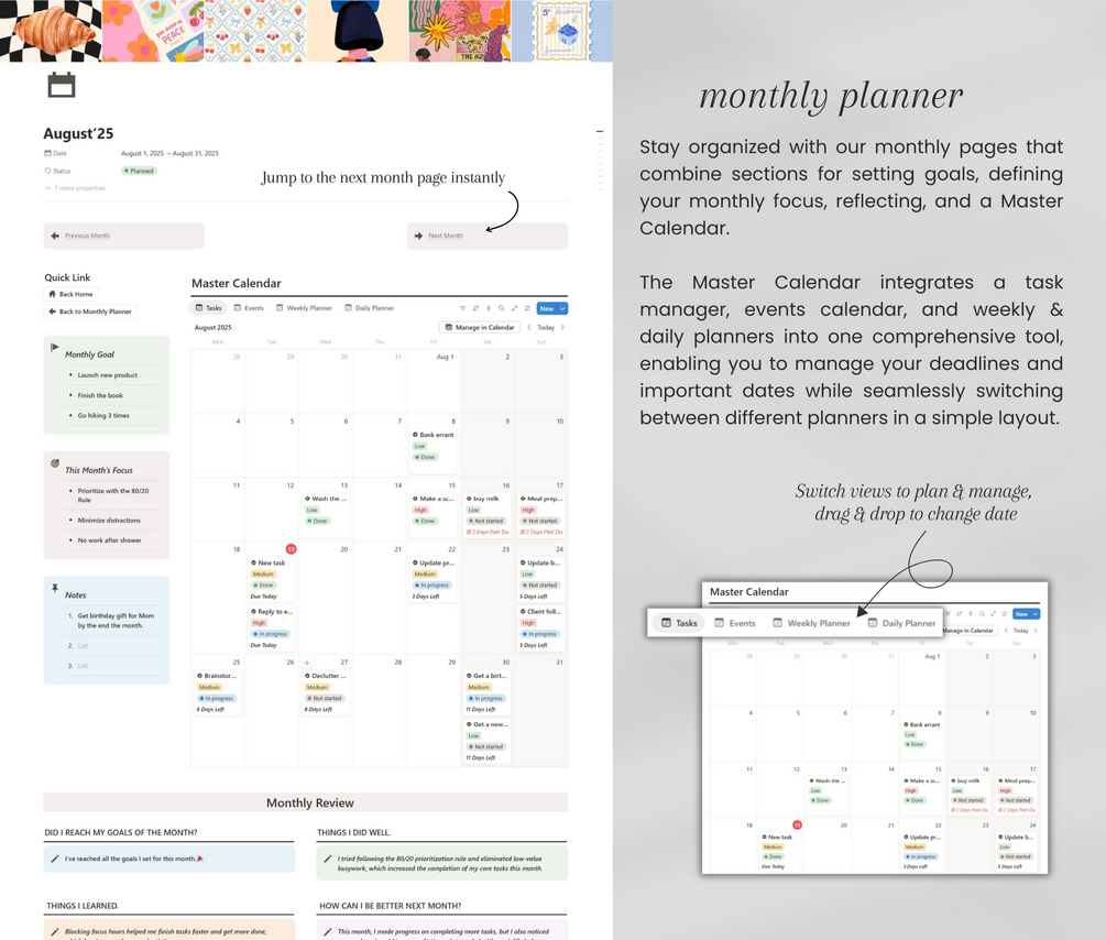 ✅ Weekly & Monthly Planner — Reflect, plan, and reset with ease
