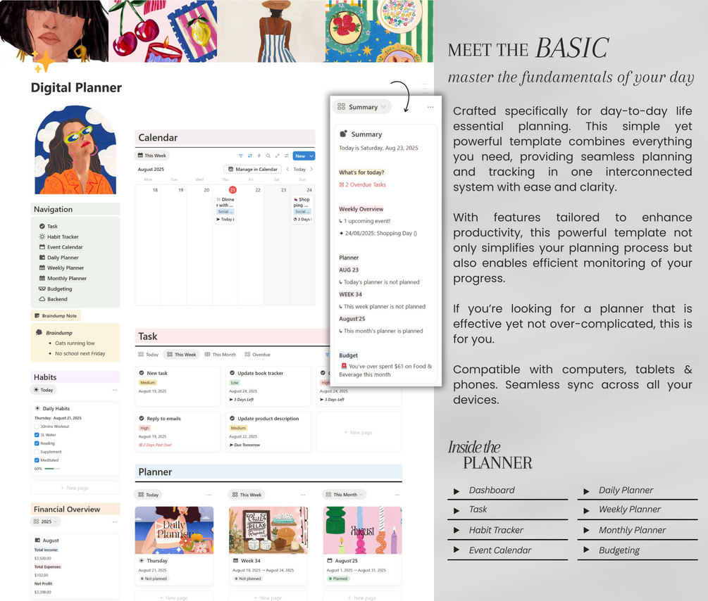 Take control of your time, tasks, and habits with this all-in-one Notion Life Planner. Whether you're a student, professional, freelancer, or just looking to get more organized, this planner has everything you need in one simple, customizable dashboard.