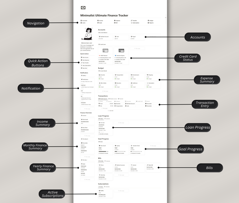 This tracker features a separate credit card database dedicated to credit debts. Its comprehensive calculation breaks down all the numbers associated with your credit card, from interest rates to annual fees.