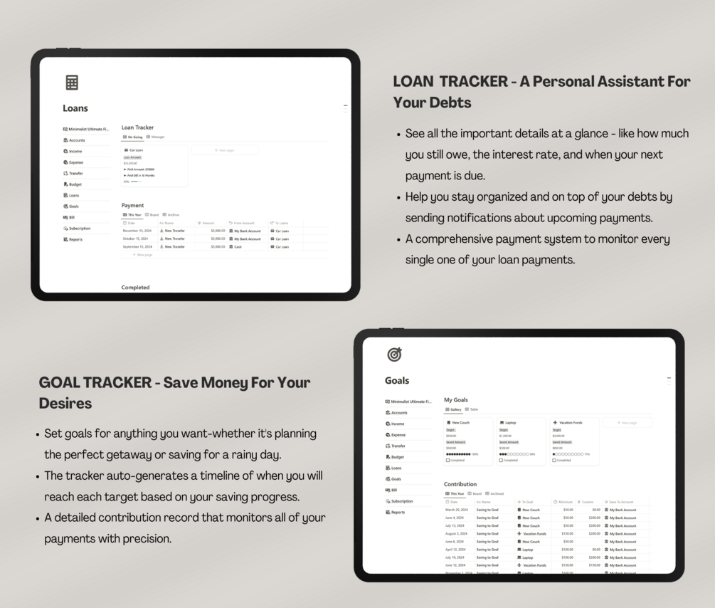 - Track income and expenses with daily, weekly, and monthly views. Categorize transactions for a detailed breakdown.