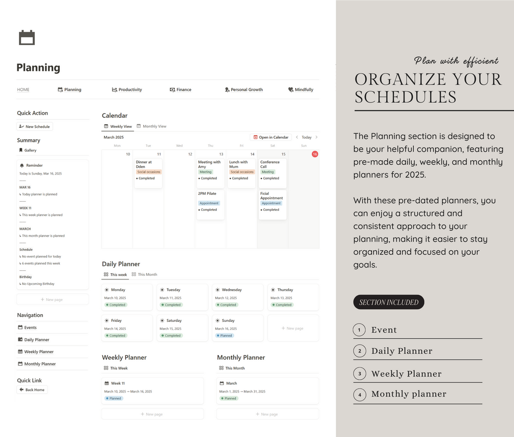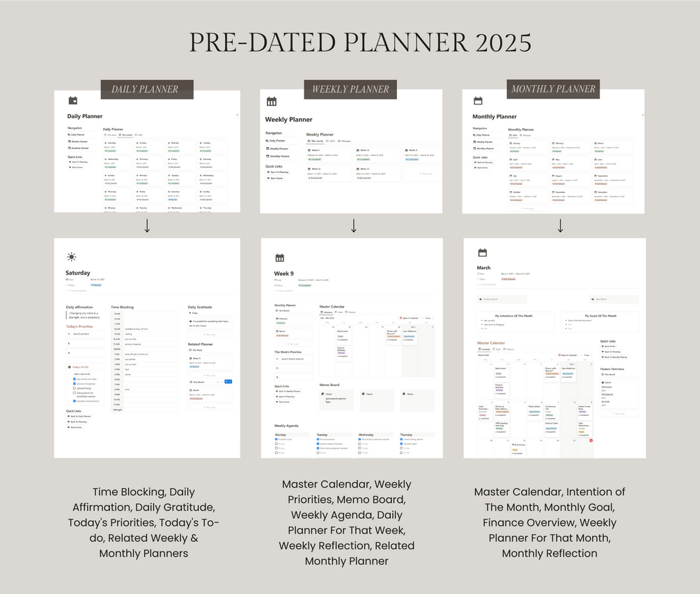 ❤ PLANNING - Event Calendar, Daily, Weekly, Monthly Planners(All Dated 2025).