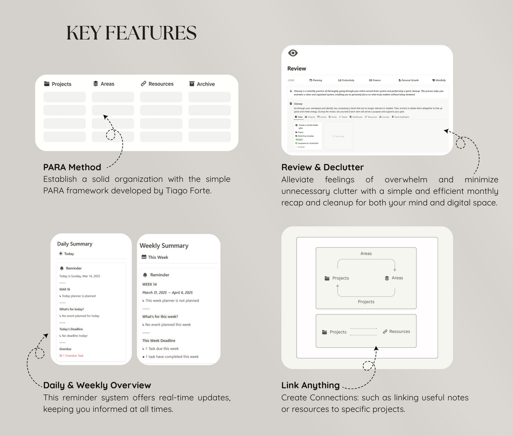 ● Link Anything: Create connection, suck as linking useful notes or references to specific projects.