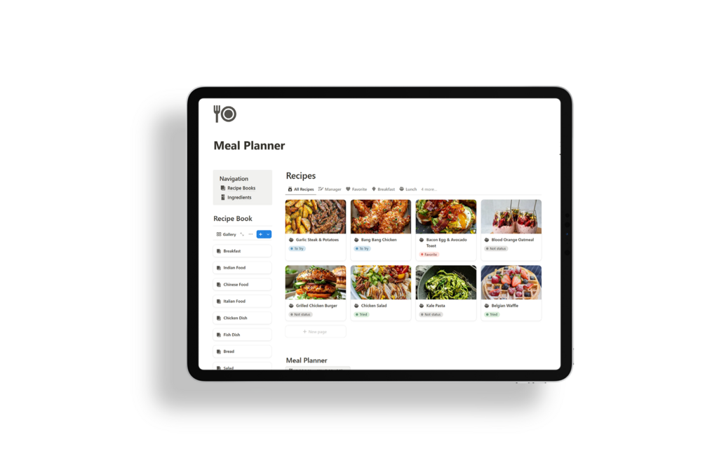 Finding the perfect easy-to-use meal planner can be a game changer for anyone looking to streamline their cooking and eating habits. With the bonus of a built-in ingredient database, you can create your shopping list quickly and never forget an item at the store. This template makes organizing your meals a breeze. Plus, with the ability to sync across multiple devices, you can access your meal plans wherever you go.
